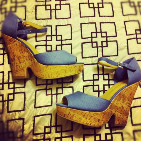 Periwinkle cork platty wedges by Lauren Conrad for Kohl's: reg. 69.99, on sale for $41.99, with 30% off coupon=around $31. However RIGHT NOW they're even cheaper online 34.99 and LOOK FOR THOSE COUPON CODES (there should be a 20% off right now).